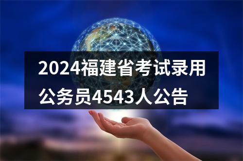 根据公务员法和《公务员录用规定》等法律法规,福建省公务员局决定组织实施福建省2024年度考试录用公务员和参照公务员法管理机关(单位)工作人员(以下简称“参公人员”)工作,计划录用4543名公务员(含参公人员)。现将有关事项公告如下: