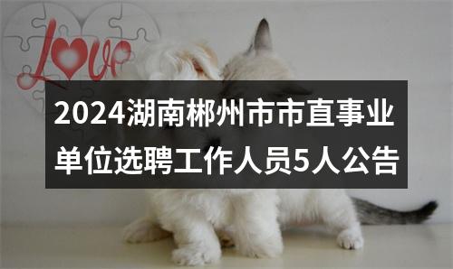 根据《关于进一步规范机关事业单位人员流动调配工作的通知》(湘组发﹝2015﹞26号)和《关于进一步改进事业单位公开招聘工作的通知》(郴组〔2016〕11号)等文件精神,2024年郴州市市直事业单位面向全市公开选聘工作人员5名,现公告如下: