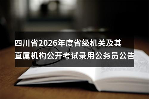 根据公务员法和《公务员录用规定》等法律法规,中共四川省委组织部将组织实施2026年度省级机关及其直属机构公开考试录用公务员(含参照公务员法管理机关〈单位〉工作人员,下同)工作。现将有关事项公告如下: