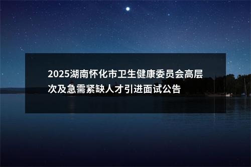 原标题:怀化市卫生健康委员会2025年高层次及急需紧缺人才引进面试公告